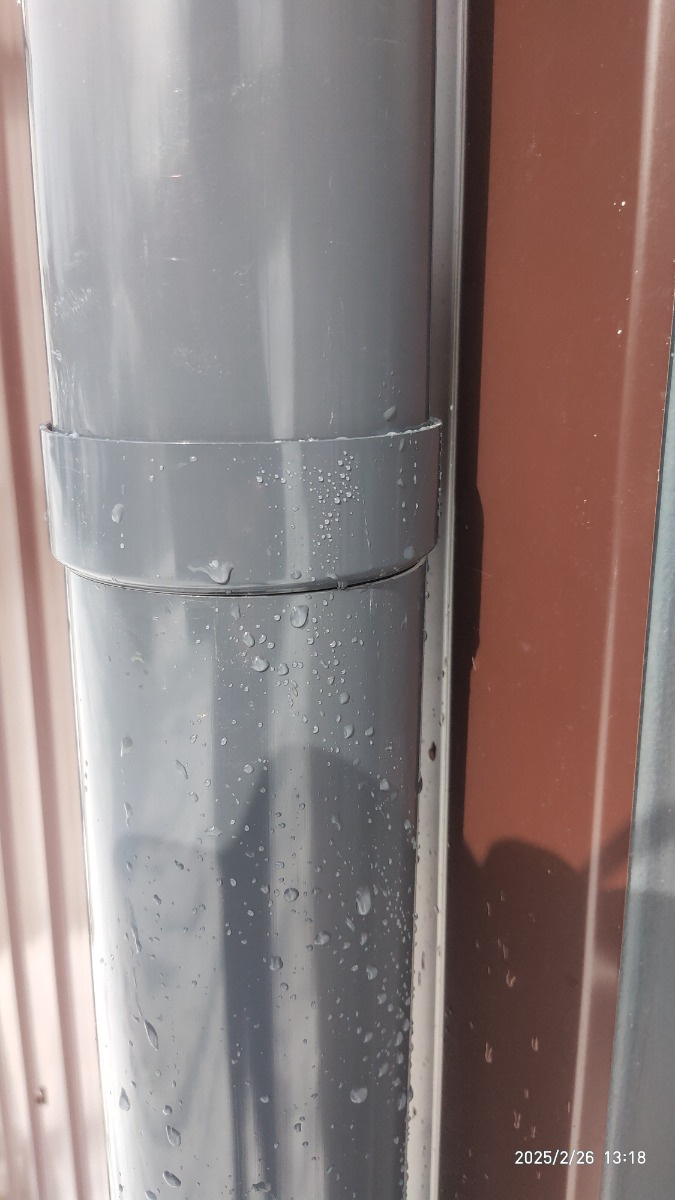 Отличная водосточная система. Пластик крепкий, цвет 100% совпал с цветом черепицы. Всё в комплекте. Сборка понятная и удобная.
